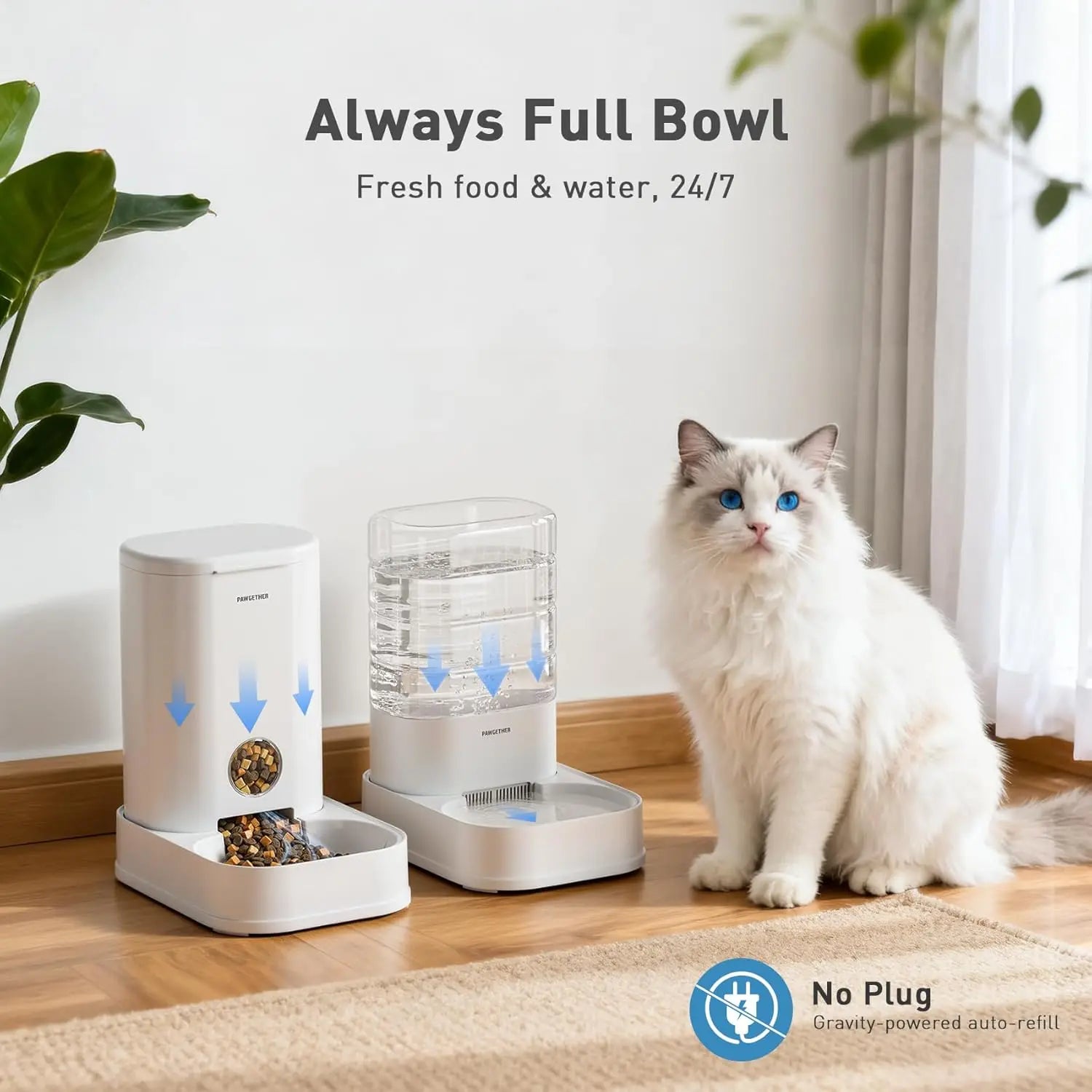- Gravity-powered design requires no electricity or batteries, automatically refilling food and water as your pets eat, so bowls stay full all day.