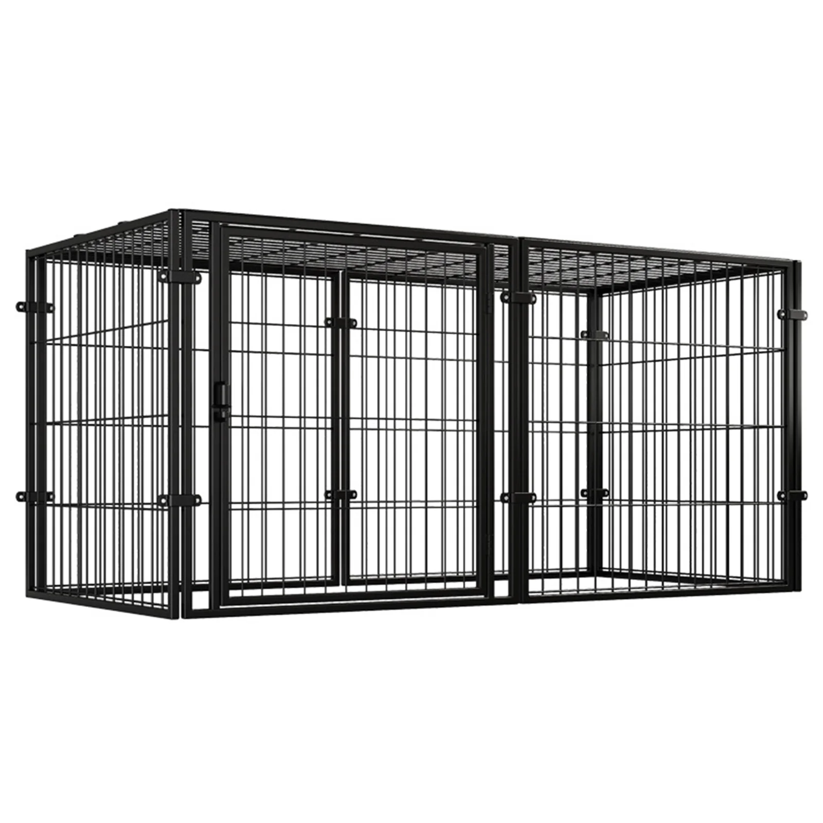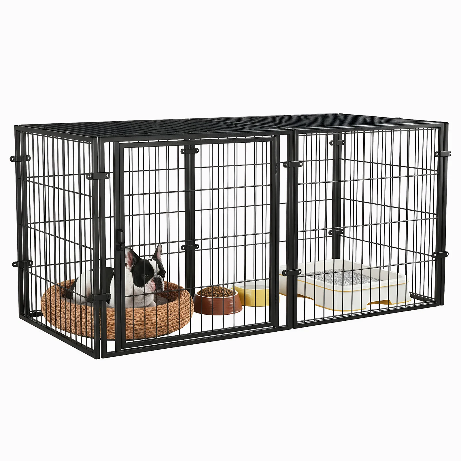 - Sturdy iron frame with reinforced steel wire interior keeps your puppies, small dogs, rabbits, or pigs safely contained, while a top cover prevents escapes.