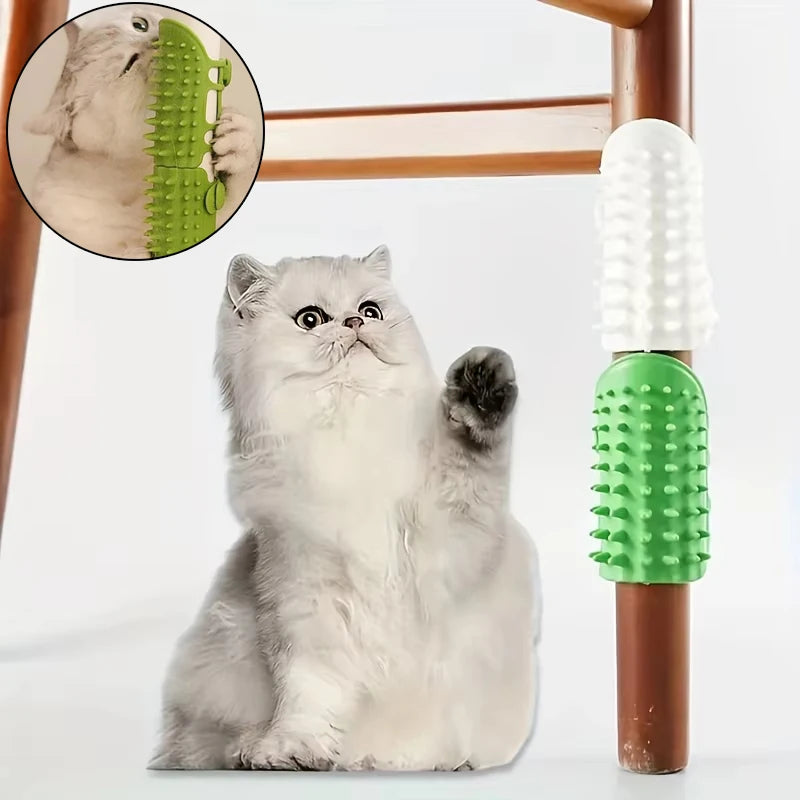 Treat your cat to a soothing massage while effortlessly removing loose fur with this self-cleaning silicone grooming comb, which also doubles as a table corner rubbing brush.