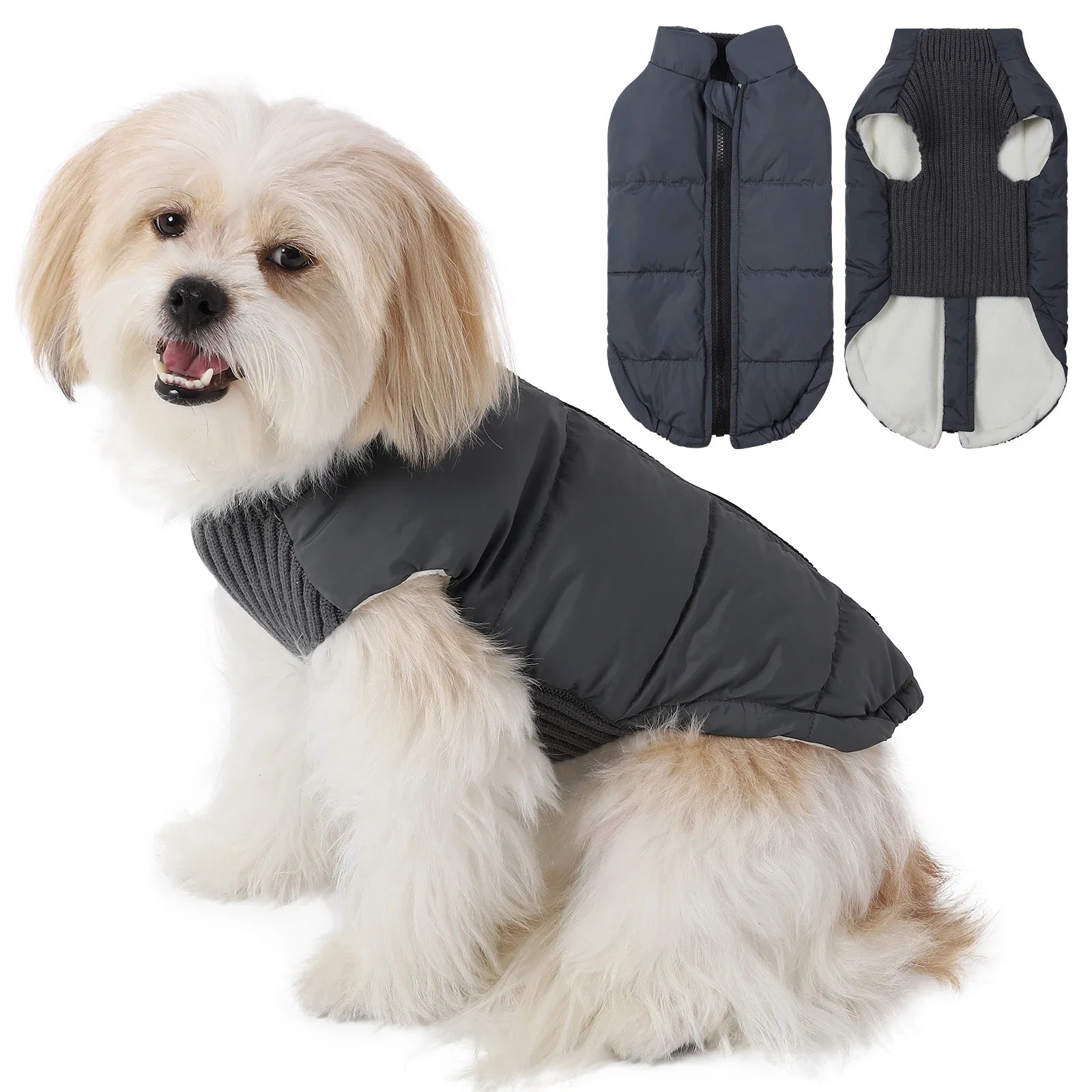 - Windproof protection with a full-length zipper uses durable polyester to shield your dog from chilly gusts while keeping movement unrestricted.