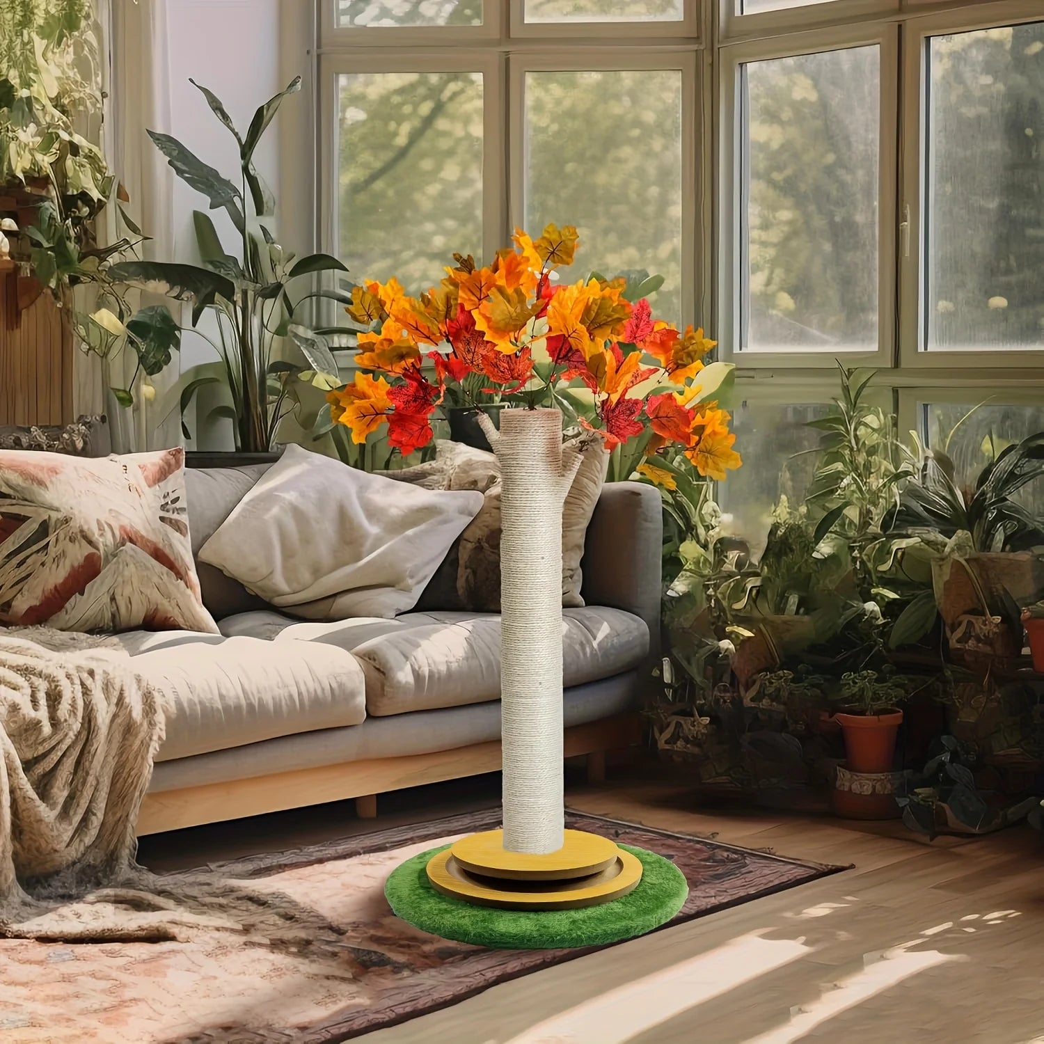 - The sturdy wooden turntable base provides stable, multi-directional play, encouraging movement, balance, and coordinated exercise as your cat rotates and claws, daily and playful.