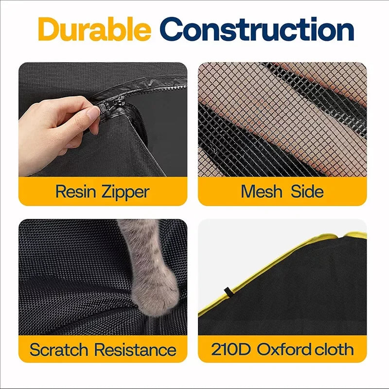 - Durable, pet-safe materials — Scratch-resistant 210D Oxford fabric with reinforced mesh ensure airflow for your pet, while resin zippers offer secure closures and long-lasting use.