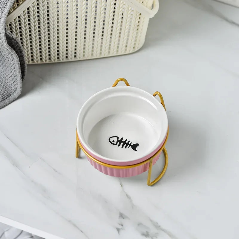 Ceramic Elevated Pet Bowl For Dogs And Cats With Bracket