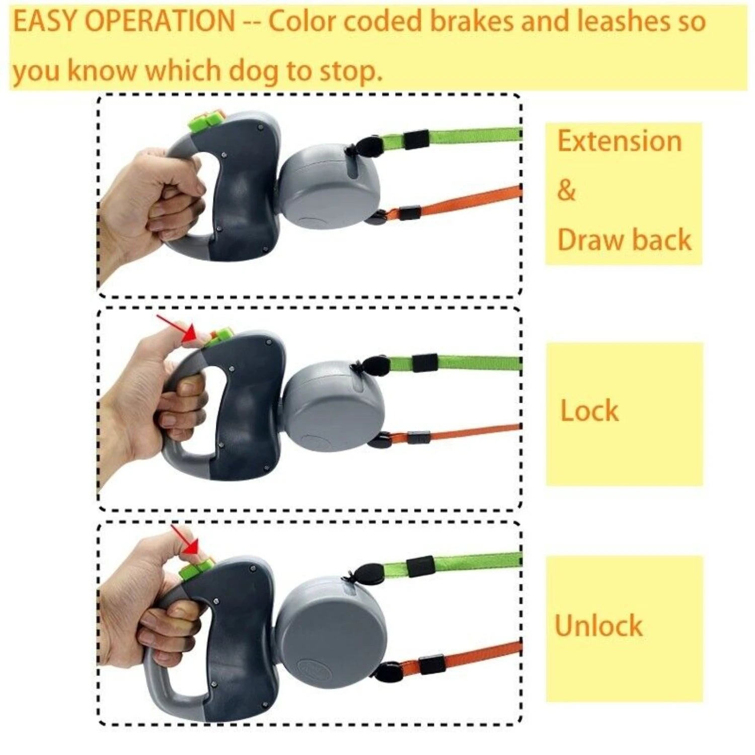 - Dual braking system and adjustable length let you tailor reach and stopping power for each dog, ideal for crowded sidewalks and park sessions.